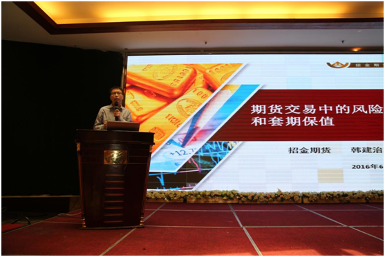 招金期貨有限公司業(yè)務部產(chǎn)業(yè)經(jīng)理韓建治做會議演講