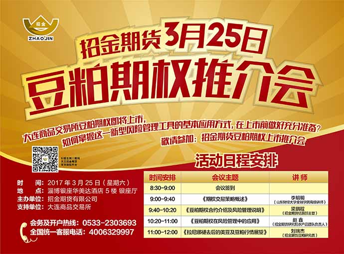敬邀參加3月25日《招金期貨豆粕期權(quán)上市推介會》!