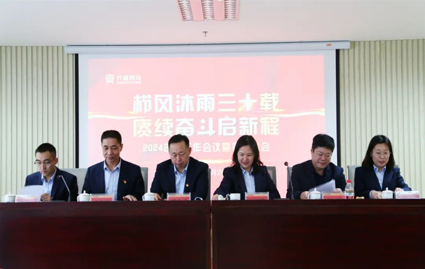 1月20日,齊盛期貨召開2024年度工作會議,公司黨支部書記、董事長邢成亮,班子成員、部門副經理以上人員共計近60人參會會議。