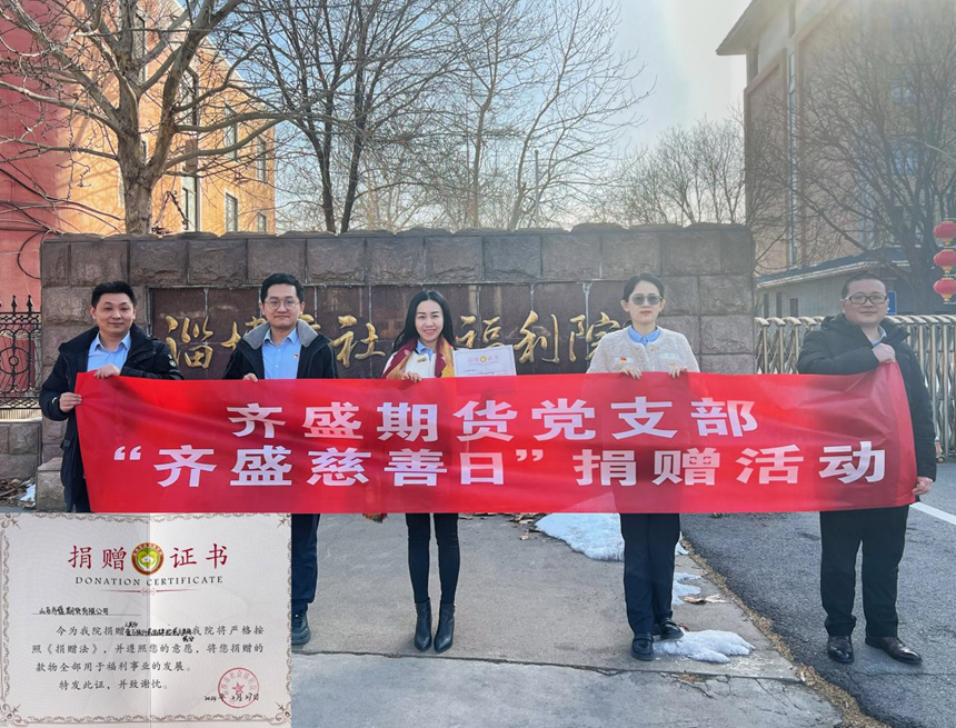 2024年伊始,“齊盛期貨慈善日”活動(dòng)如期舉行,通過現(xiàn)場捐款和線上捐款的方式,共計(jì)籌得捐款32242.32元。2月27日,齊盛期貨黨支部派黨員代表和員工代表前往淄博市社會(huì)福利院、桓臺(tái)縣大地慈養(yǎng)院進(jìn)行了現(xiàn)場捐贈(zèng)。