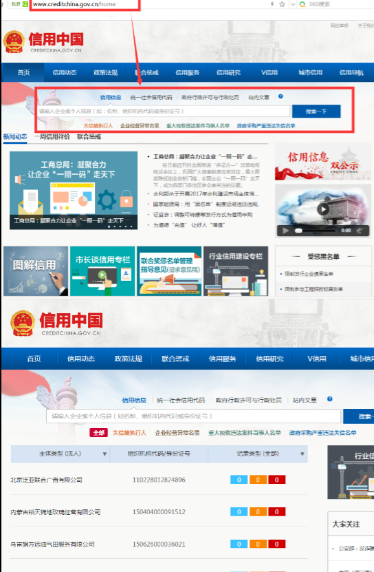 1、打開信用中國(guó)失信記錄互聯(lián)網(wǎng)查詢平臺(tái)網(wǎng)址: