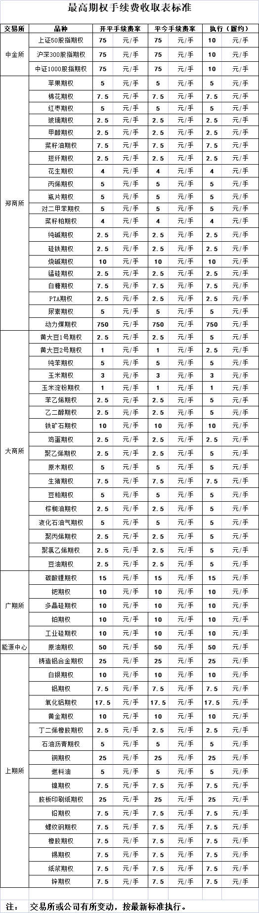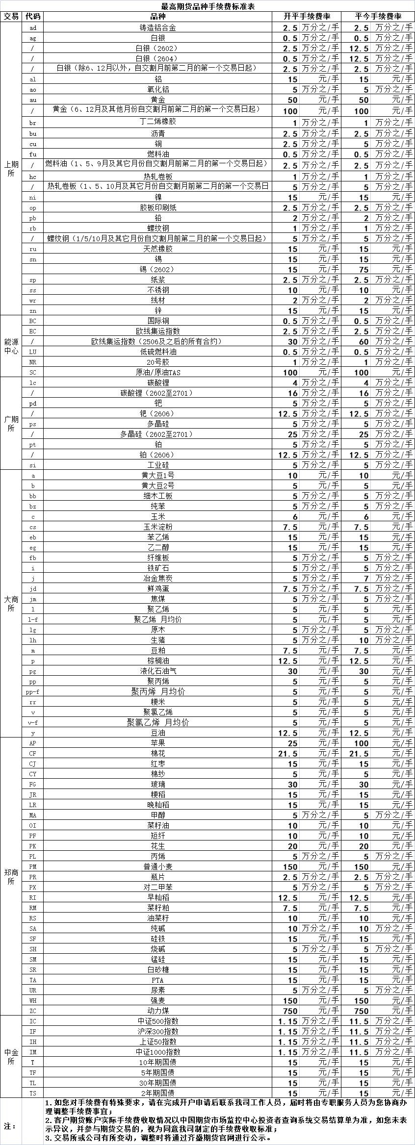 手續(xù)費公示