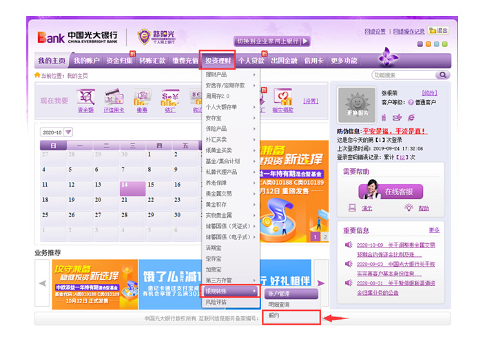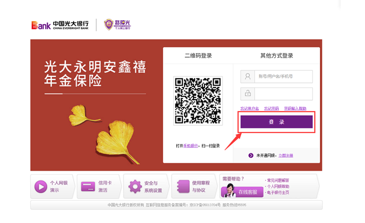 登錄光大銀行網(wǎng)銀。