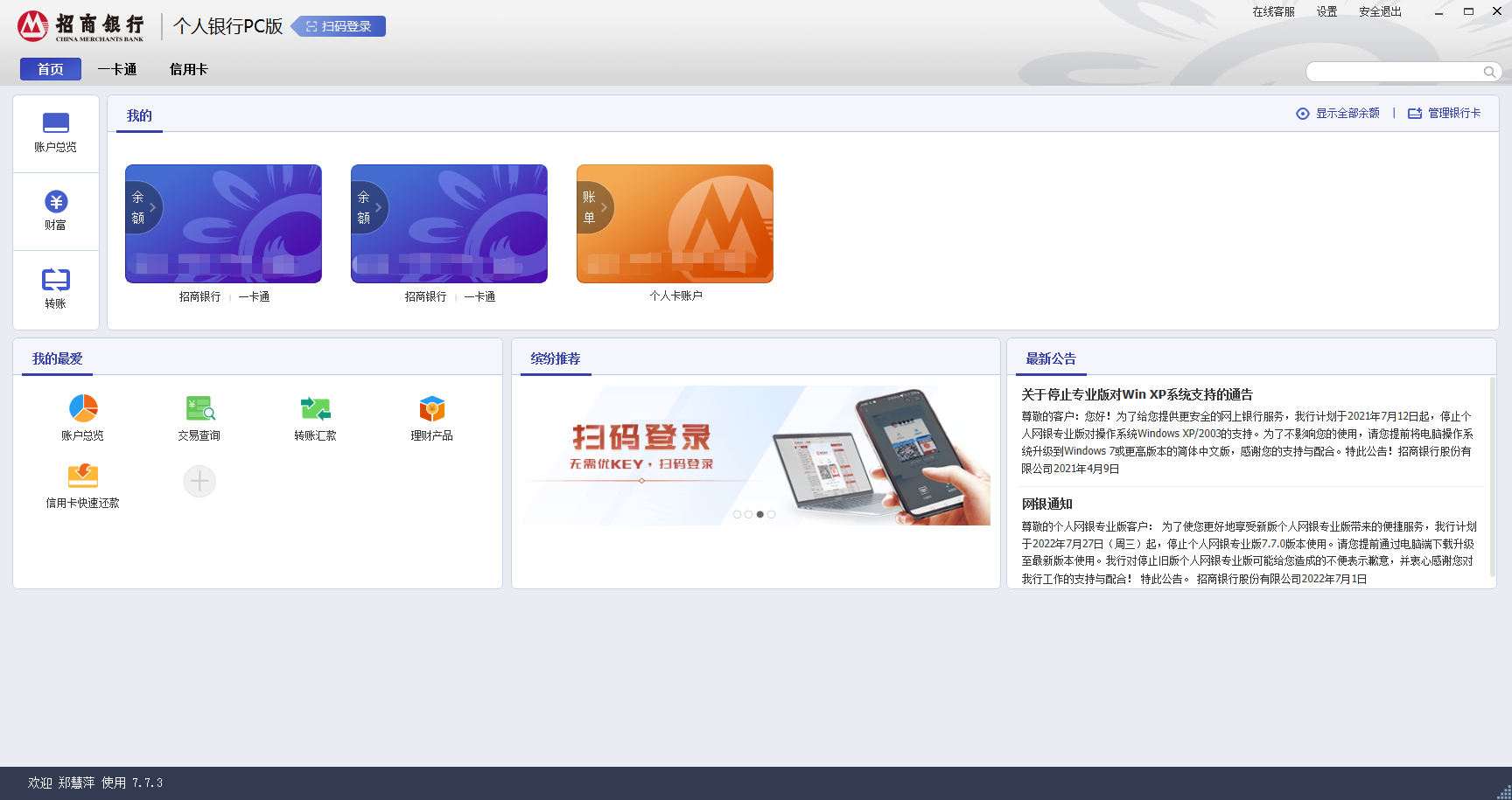 登錄招商銀行個(gè)人銀行PC版(專業(yè)版)