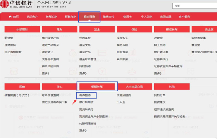 選擇投資理財(cái)-銀期轉(zhuǎn)賬-客戶簽約。