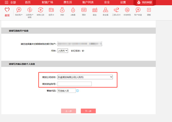 選擇期貨公司,填寫資金賬號等信息后,點擊“下一步”。